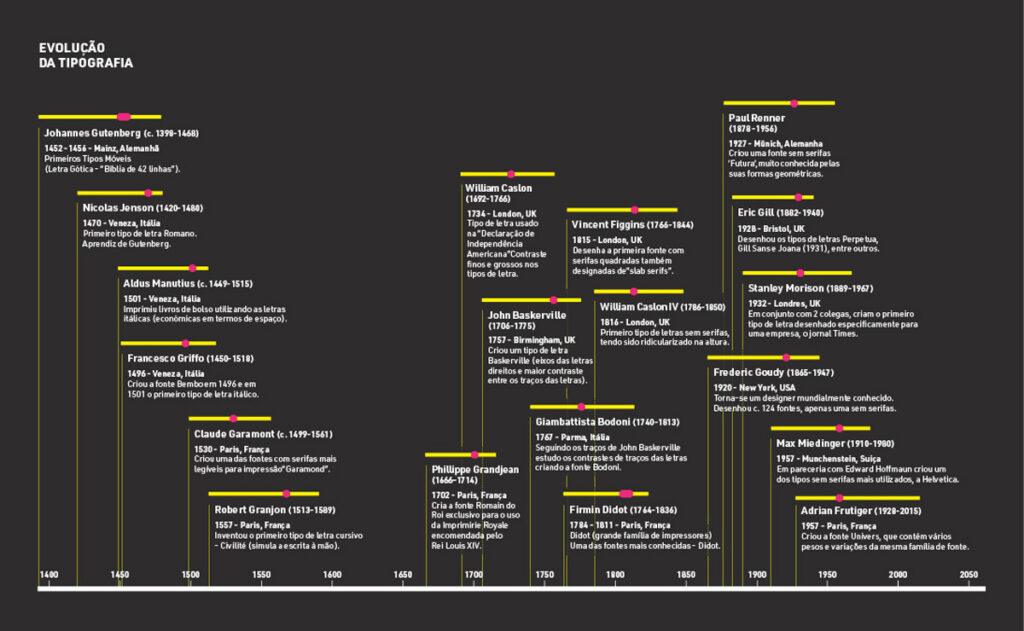 Infographic poster developed for the 6ET, describing the evolution of writing and typography throughout the centuries.